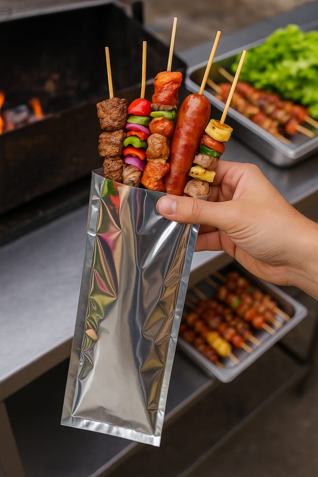 - Resistente cabem em média 5 espetinhos (Tamanho 38,5 x 12 cm)