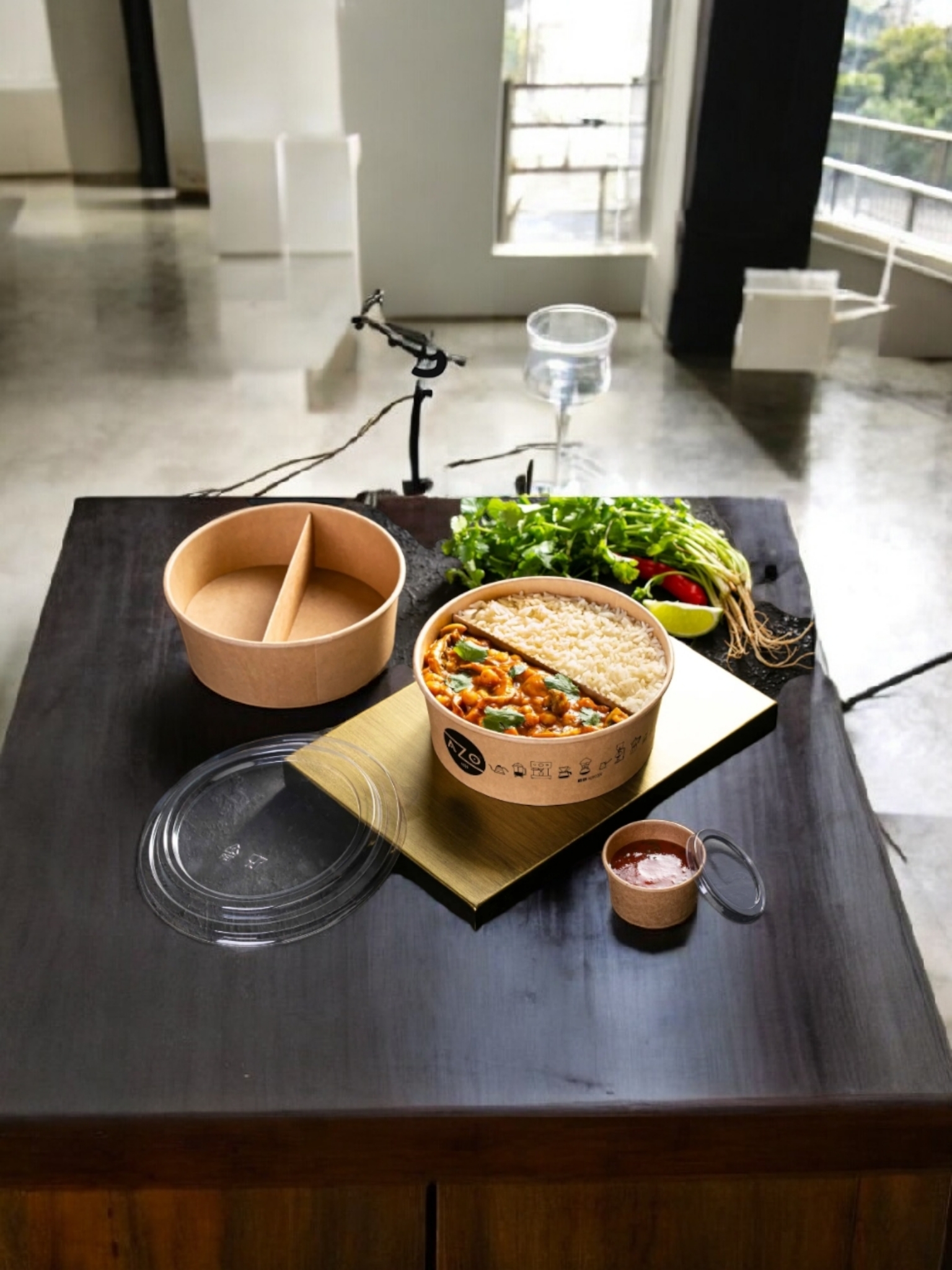 O Pote de Papel Kraft com Tampa e Divisória1300ml é a solução ideal para delivery, take away e street food, garantindo transporte seguro e apresentação profissional dos alimentos. Produzido com fibras de celulose 100% virgem e papel cartão de origem controlada, é um produto biodegradável e compostável, contribuindo para a preservação do meio ambiente.