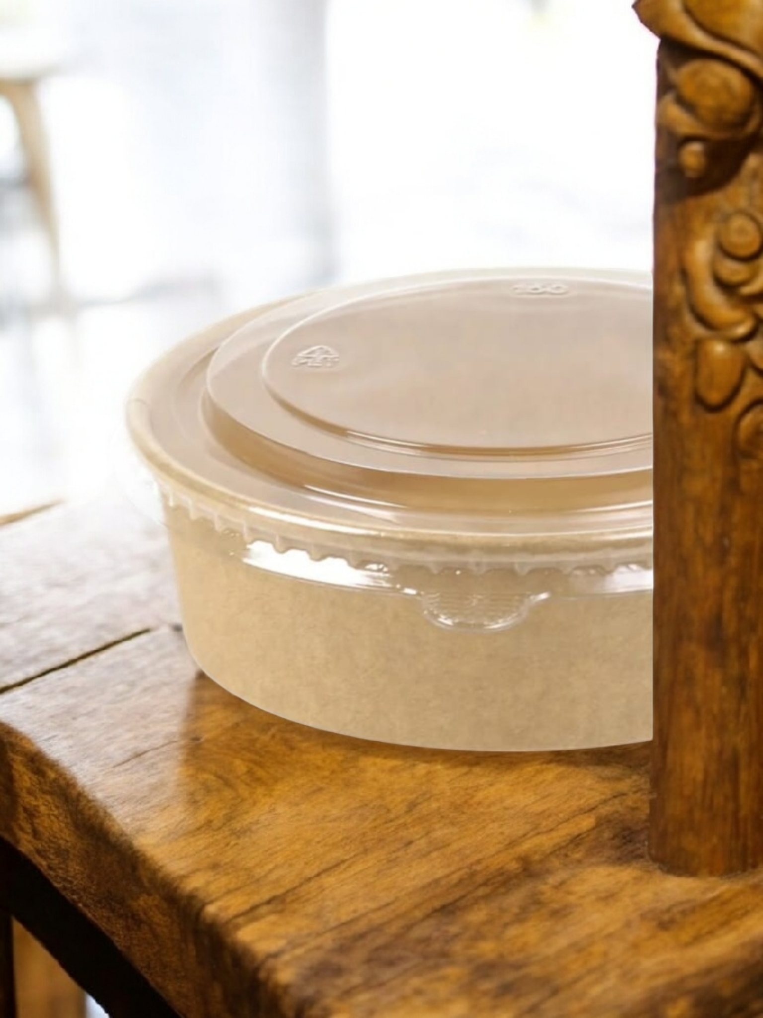 Este bowl kraft suporta de 0°C a 110°C (sem tampa) e é perfeito para armazenar e transportar saladas, massas, sopas, legumes, frutas, doces, sobremesas e pratos quentes ou frios. Acompanha tampa transparente com fechamento clip-on, que garante vedação segura e evita vazamentos, tornando-o antivazamento e aprovado para contato com alimentos segundo as regulamentações Anvisa RDC-88 e RDC 216.