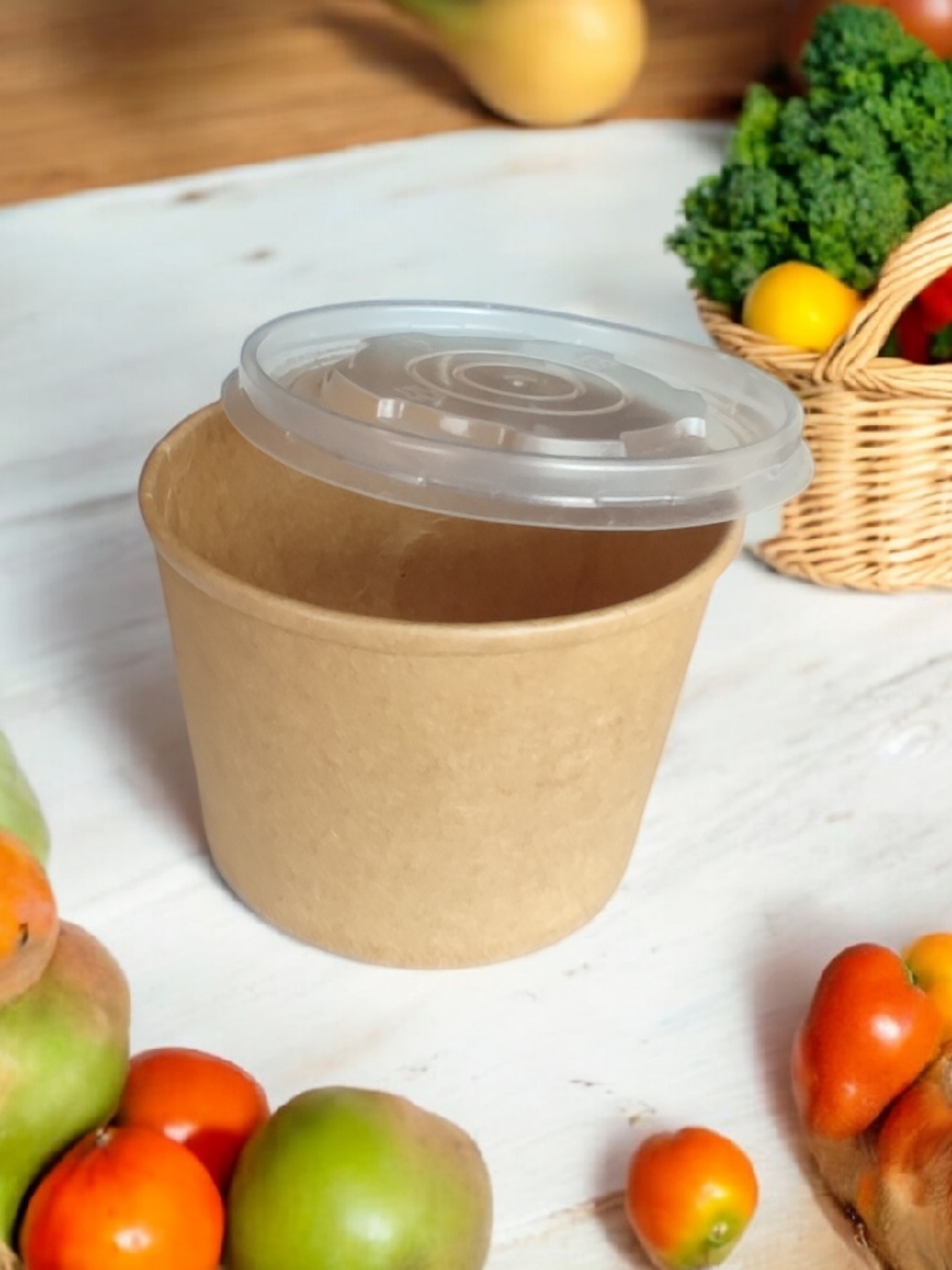 Pote de papel biodegradável Kraft 480ml com tampa.